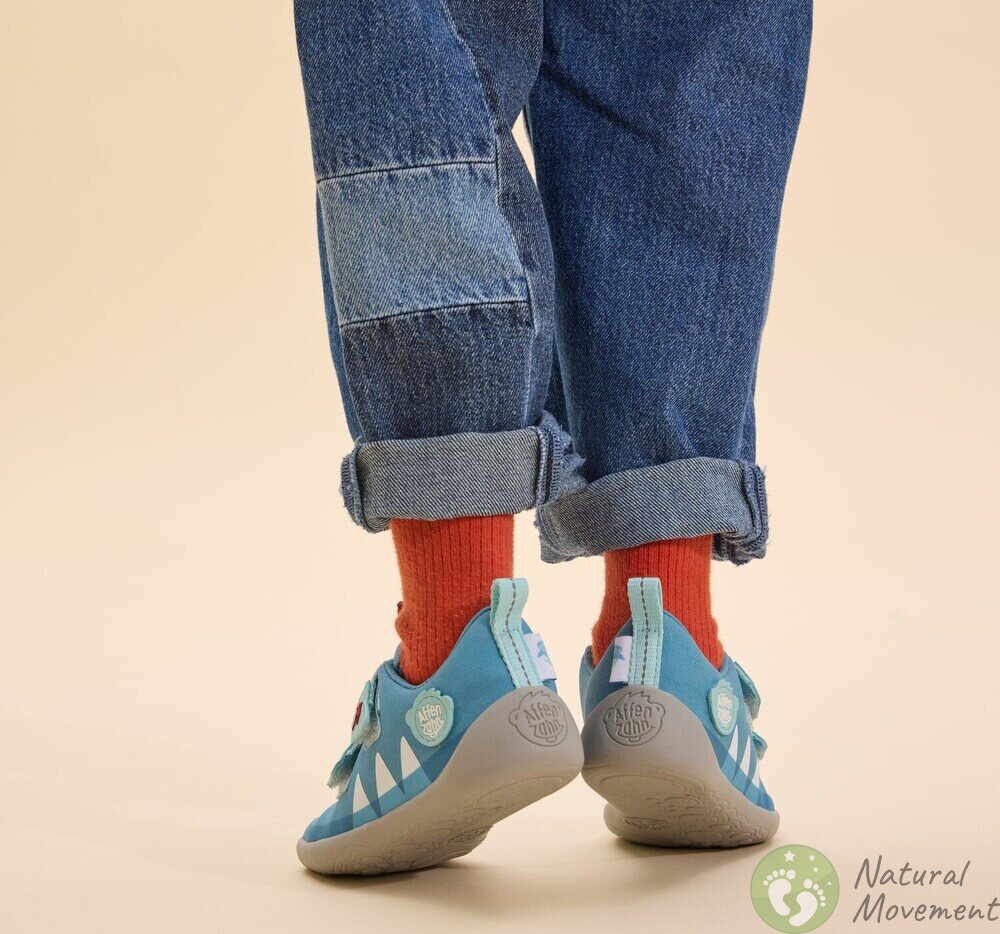 The child's foot needs the freedom to move naturally for normal development. When the shoe does not support the foot in a certain position or block any movements, it allows the small muscles of the foot to work. The natural shape of the Affenzahn footwear also provides enough space for all toes.