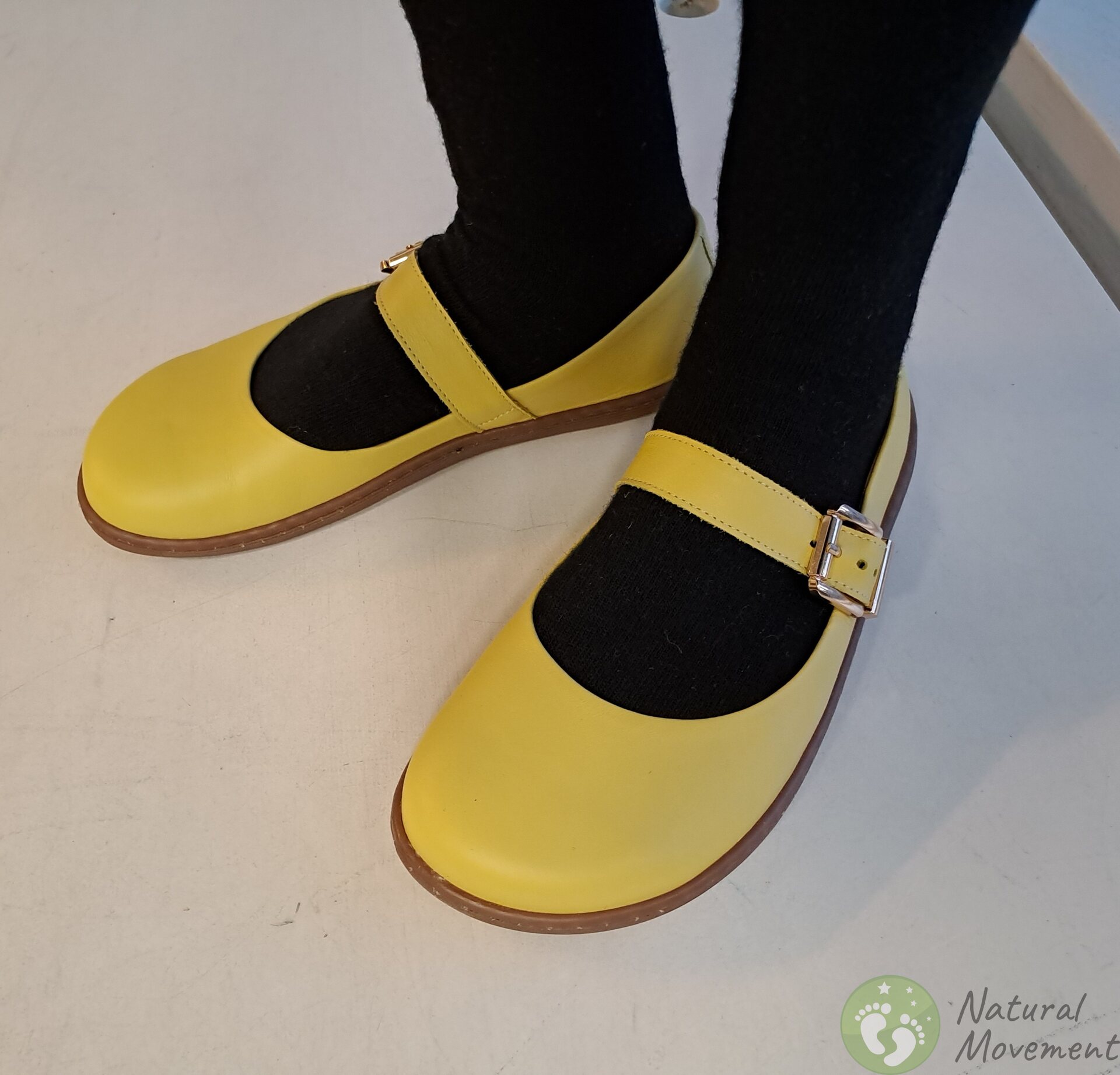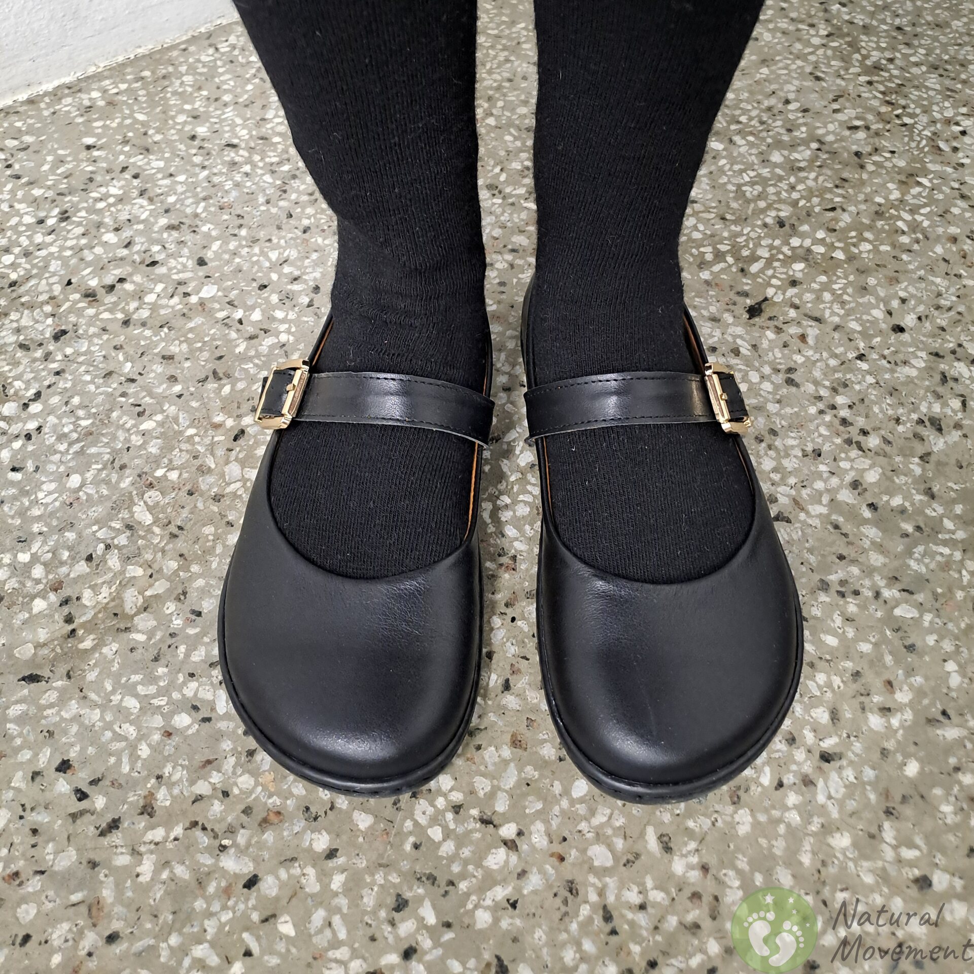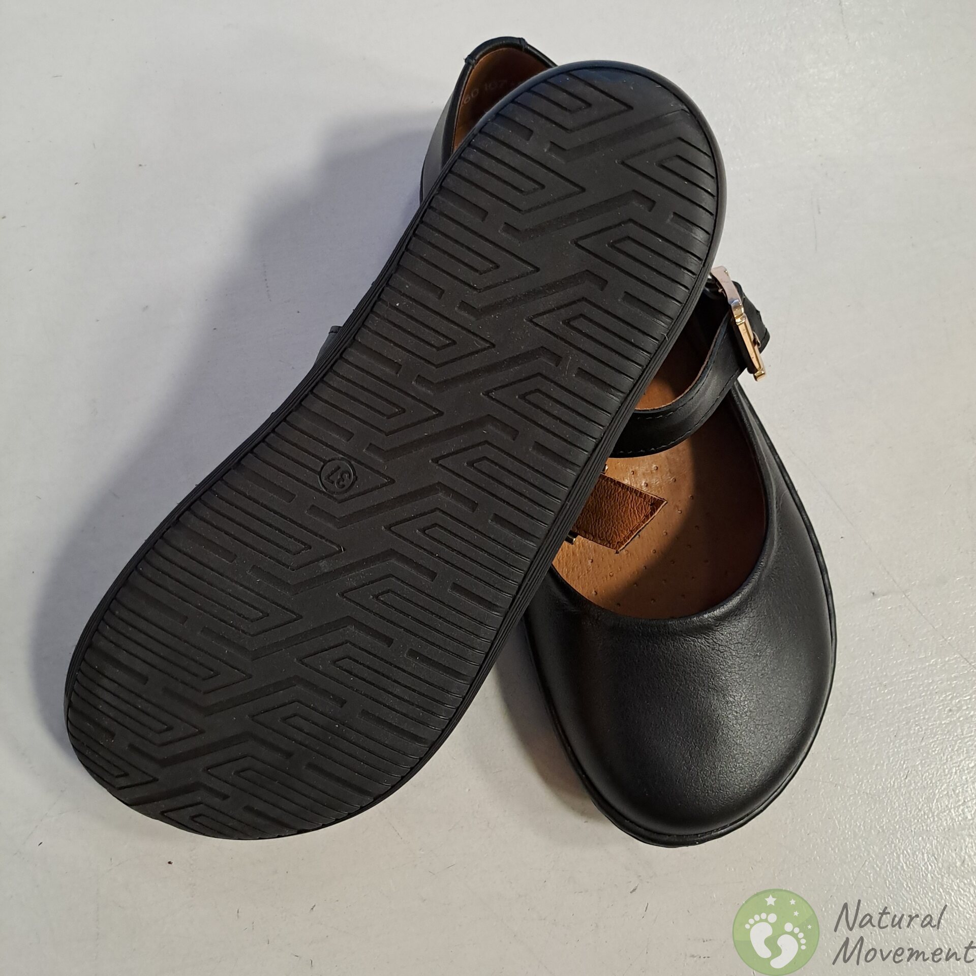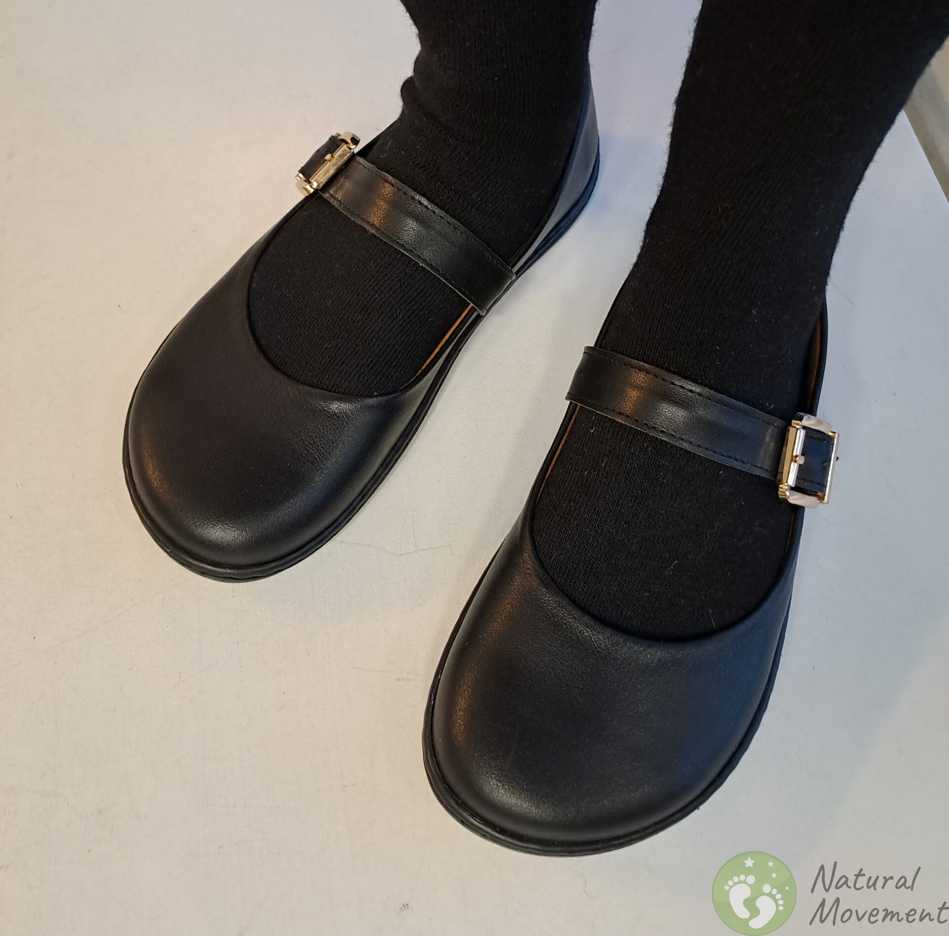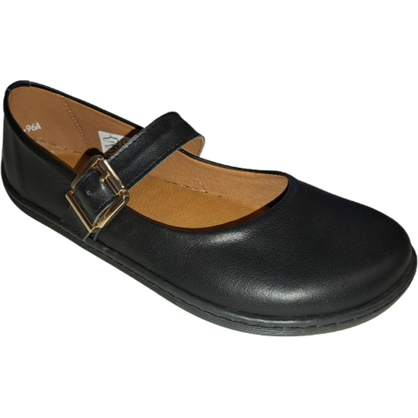 Beautiful and comfortable shoes with classic "Mary Jane" stuyle are suitable for wearing with trousers and skirts, in everyday life and at more festive occasions. Leather upper and lining, removable leather insoles. Tightly sewn barefoot sole to the leather upper. Option to insert cork insoles, which are included.