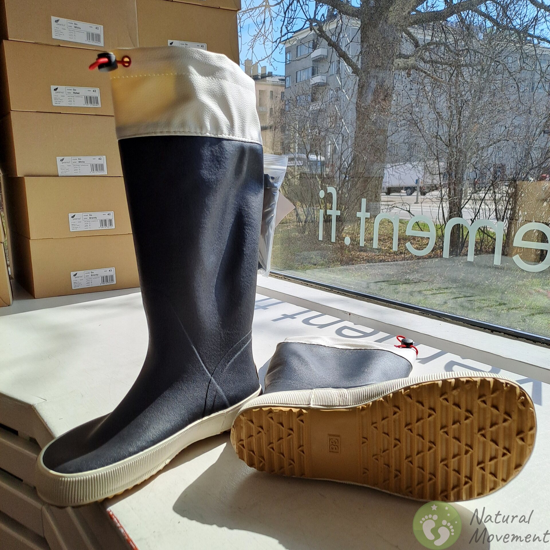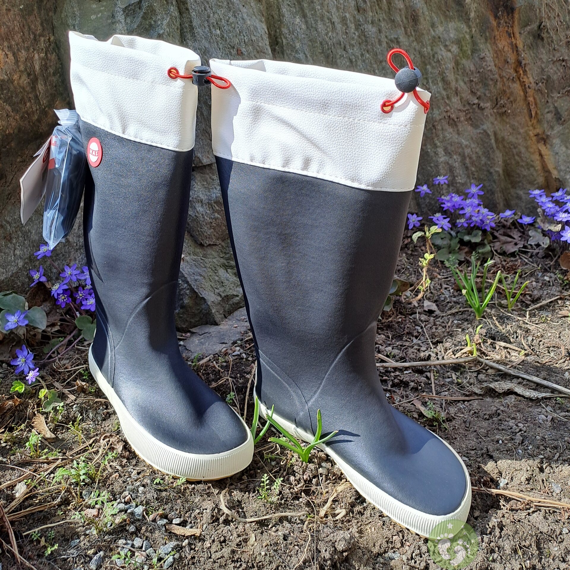 - Saapad on valmistatud naturaalsest kautšuki segust, tekstiilvooder 65% taaskasutatud polüester/35% puuvill ja varrekaelus 100% polüuretaan.