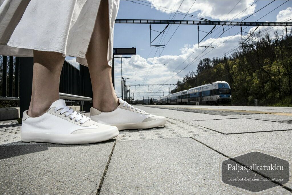 Ensimmäiset paljasjalkakenkäni. Ensimmäistä kertaa ikinä jalat mahtuvat tunkematta kenkään, ihana tunne. Lesti on leveä (wide -malli). Jalka vaatii totuttelua paljasjalkakenkiin, jalkapohjat väsyvät aluksi. Tuntuma on laadukas.